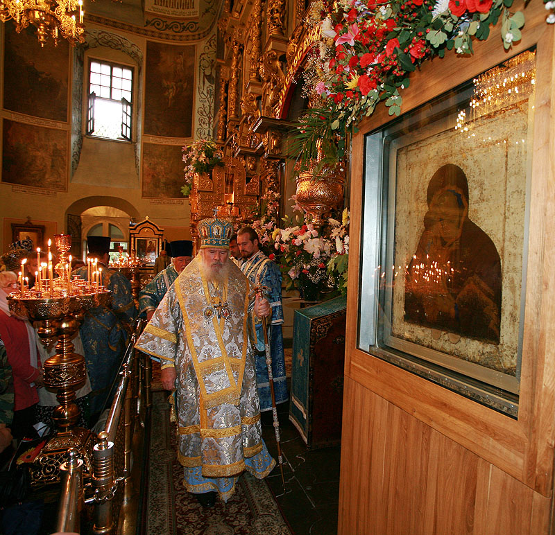 В день праздника Донской иконы Пресвятой Богородицы Святейший Патриарх совершил Божественную литургию в Донском монастыре