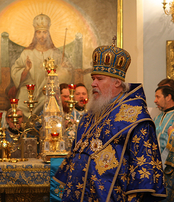 Его Святейшеству сослужили архиепископ Истринский Арсений и епископ Бронницкий Феофилакт, сообщает Седмица.Ru.
