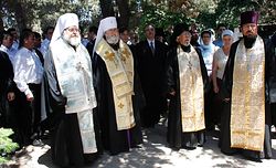 После богослужения члены церковной делегации беседовали с собравшимися на кладбище соотечественниками, в том числе и с теми, которые входят в общину, отделившуюся в прошлом году от Русской Зарубежной Церкви. Многие из них высказали желание восстановления единства.