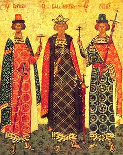 Равноапостольный князь Владимир со святыми Борисом и Глебом. Новгородская таблетка