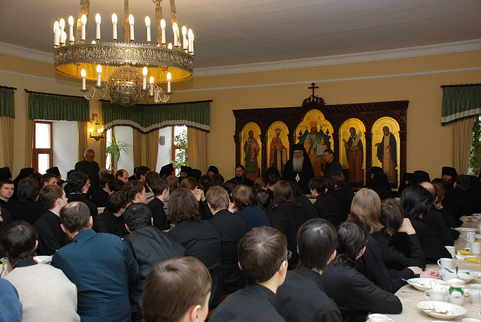 На этот раз известный греческий миссионер разделил с насельниками монастыря братскую трапезу, после которой обратился к собравшимся с теплым архипастырским приветствием и наставлением.