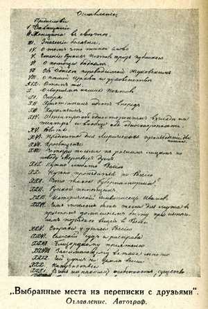 В это время Гоголь уже работает над книгой, что видно из письма к Языкову от 5 мая (н. ст.) 1846 года: «Я не оставляю намерения издать выбранные места из писем, а потому, может быть, буду сообщать тебе отныне почаще те мысли, которые нужно будет пустить в общий обиход». В том же 1846 году Гоголь набрасывает в записной книжке план будущей книги, в которой, как он надеялся, ему удастся разрешить свою важнейшую писательскую задачу.