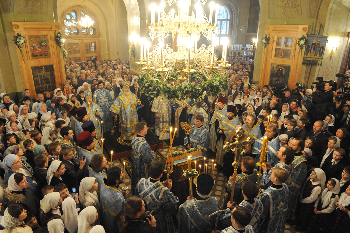 6 апреля Предстоятель Русской Православной Церкви совершил всенощное бдение в храме Благовещения Пресвятой Богородицы, что в Петровском парке Москвы. Его Святейшеству сослужили епископ Дмитровский Александр, епископ Люберецкий Вениамин, настоятель церкви протоиерей Димитрий Смирнов, благочинный Всехсвятского округа протоиерей Сергий Никитин, столичное духовенство.