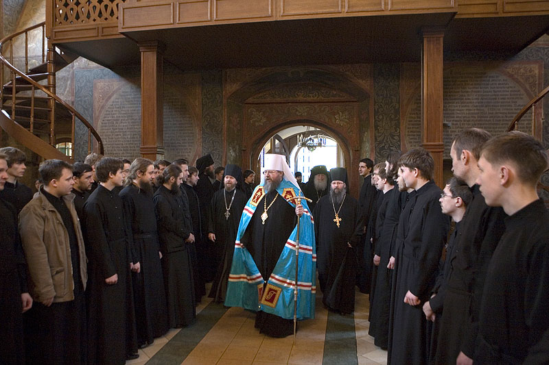 “It is a great joy for me to see you all, monks, novices and seminarians. What happens inside the walls of this monastery is very important for the Church and for you yourselves: to find salvation through the monastic life and to support each other on this path to salvation. Monasticism is the foundation of the Church; without monasticism there is no Orthodoxy. Monasticism is the apostolic way of life, life fully in accord with the Gospel, life in full submission to the teachings of our Lord and Saviour Jesus Christ. Monasticism is real Christian life. I cannot describe with words how important this ‘life solely for the sake of Christ’ is for the Church, for all believers, and for all those who have yet to come to the Church. You may not know them, these future Christians; but they see your brotherly love, they see that there is the possibility of living not according to earthly laws but according to the Gospel. And when people see that brothers love each other, support each other, bear with each other, then they understand that there exists another completely different world. And that is your most important missionary activity.