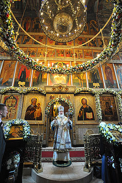 Собственно говоря, все, что происходит в этих стенах, является некой моделью того, что должно происходить в масштабах Церкви. Не только монастырь, но каждый приход, в первую очередь оставаясь местом молитвы, местом совершения служб, центром духовной жизни, одновременно должен становиться образовательным, культурным и социальным центром. В каждом приходе должна быть особая программа, параллельная богослужебной жизни, которая бы в сочетании с богослужебной жизнью помогала людям яснее понимать, что означает дух христианина, что означает православная вера, почему, собственно говоря, современный человек должен искать опору в вере, а не в каких-то философиях, технологиях, социальных экспериментах и так далее. Я думаю, очень важно, чтобы наша Церковь на приходском уровне, как и на монастырском, сегодня являла не только пример того, как нужно жить и работать современному православному человеку, но, чтобы каждый приход, каждый монастырь являли из себя некую школу такой христианской жизни».