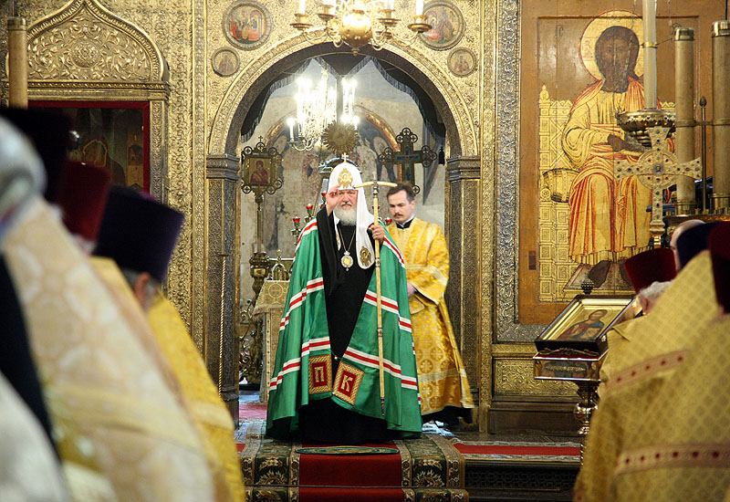 После чтения Евангелия Святейший Патриарх Кирилл обратился к молящимся с проповедью, посвященной жизненному подвигу московского святителя, ставшего первым Предстоятелем Русской Православной Церкви после обретения ею автокефалии.