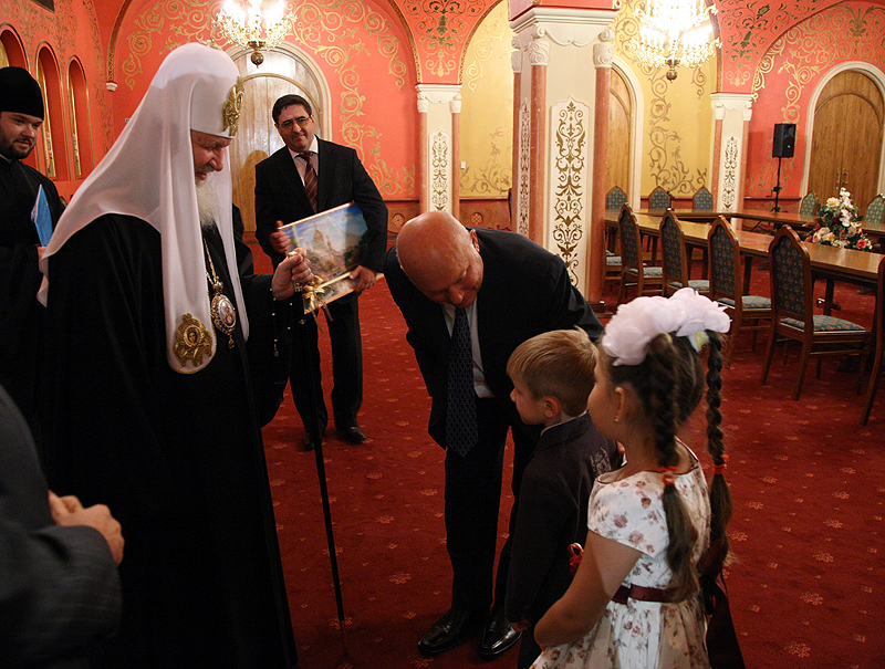Святейший Патриарх Кирилл и мэр Москвы вручили подарочные наборы специальных книг слепым и слабовидящим детям