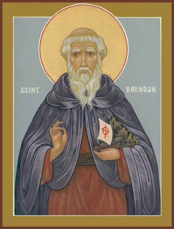 Примерно в 486 году около городка Трали на юго-западном побережье Ирландии родился человек, который в дальнейшем станет известен как святой Брендан Мореплаватель. Он основал огромное количество монастырей, из которых обитель в Клонферте, образованная им в 559 году, стала наиболее известной. Получив воспитание и наставление у святой Иты из Лимерика и святого Энды Инишморского, святой Брендан с небольшой группой монахов отправился в плавание по Атлантике. Семь лет они плавали по Атлантическому океану, западнее своей родины, заново посещая каждый год одни и те же острова в дни больших церковных праздников. Вполне возможно, что святой Брендан и его спутники доплыли до берегов Северной и Центральной Америки[1]. Святой Брендан преставился около 575 или 583 года. Почитается как покровитель моряков. Существует акафист святому Брендану на французском языке. День его памяти – 16 мая.