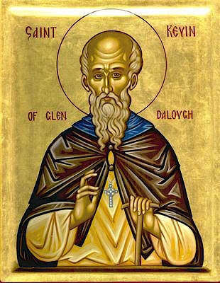 В молодом возрасте святой Кевин пересек холмы Уиклоу, сопровождаемый ангелом, и поселился на верхнем озере в месте под названием Глендалоу («Долина озера»). В этом идиллическом месте он основал монастырь, которому предстояло стать одним из крупнейших и влиятельнейших в Ирландии на многие последующие столетия. Как это часто было со святыми Ирландии, святой Кевин жил в гармонии с природой. Так, известен рассказ о том, что однажды черный дрозд свил гнездо на руках святого, вознесенных в молитве. Много лет святой Кевин вел отшельническую жизнь, а преставился в 618 году, прожив 120 лет. День его памяти – 3 июня.