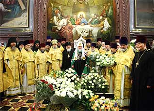 Митрополит Ахалкалакский и Кумурдойский Николай передал Предстоятелю Русской Церкви приветствие от Святейшего и Блаженнейшего Католикоса-Патриарха всея Грузии Илии II. От лица представителей Поместных Православных Церквей, пребывающих в Москве, со словами поздравления к Его Святейшеству обратился архиепископ Филиппопольский Нифон, представитель Патриарха Антиохийского и всего Востока при Патриархе Московском и всея Руси.