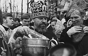 | Лавра. Архимандрит Иероним с кропилом. Слева от него инок Александр |