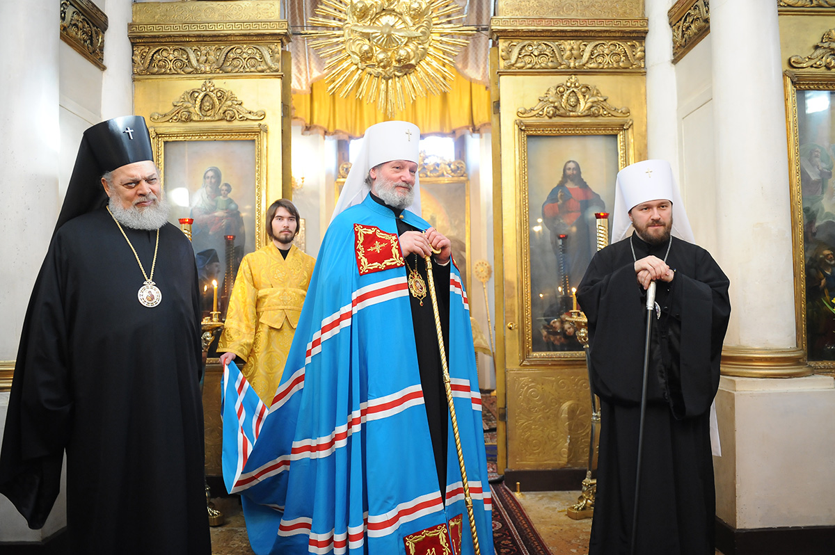По окончании Литургии председатель ОВЦС приветствовал Блаженнейшего Митрополита Христофора: