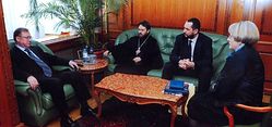 В завершение беседы митрополит Волоколамский Иларион пригласил С.В.Степашина посетить вместе с супругой Скорбященский храм на Большой Ордынке, настоятелем которого он является.