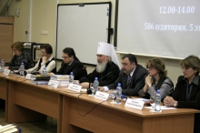 В круглом столе приняли участие: Митрополит Калужский и Боровский Климент, председатель Издательского Совета Русской Православной Церкви; Орлов Михаил Олегович, Председатель Комитета по связям с религиозными организациями города Москвы; Ермаченко Юрий Алексеевич, заместитель руководителя Департамента образования города Москвы, кандидат политологических наук; Исаченко Татьяна Александровна, ведущий научный сотрудник научно-исследовательского отдела книговедения Российской государственной библиотеки, доктор филологических наук; Богатова Галина Александровна, профессор Московского городского психолого-педагогического университета, доктор филологических наук; Дудова Людмила Васильевна, заведующая кафедрой филологического образования Московского института открытого образования, кандидат филологических наук, доцент; Макарова Елена Владимировна, директор НОУ Школа «Живоносный Источник», кандидат педагогических наук.