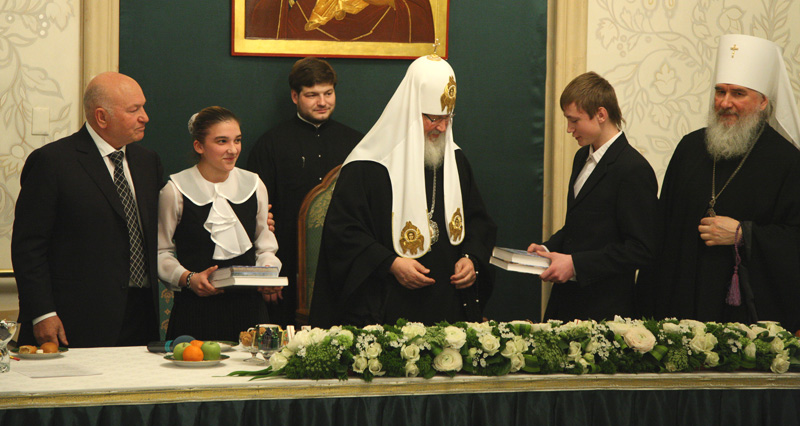 Святейший Патриарх Кирилл и мэр Москвы Ю.М. Лужков вручили комплекты книг воспитанникам детских домов