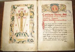 Одна из книг, переписанных учениками прп. Паисия Величковского. Фото Игоря Зыбина / Православие.ру 25 марта 2010 г.