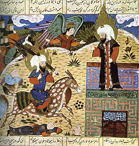 Вот как это описывается: «Когда наступил этот месяц… посланник Аллаха отправился к горе Хира… Когда наступила ночь… принес ему Джибрил веление Аллаха. Посланник Аллаха рассказывал: “Явился мне Джибрил, когда я спал, с парчовым покрывалом, в которое была завернута какая-то книга и сказал: "Читай!" Я ответил: "Я не умею читать". Тогда он стал душить меня этим покрывалом, так что я подумал, что пришла смерть. Потом он отпустил меня и сказал: "Читай!" Я ответил: "Я не умею читать". Он опять стал душить меня им, и я подумал, что умираю. Потом он отпустил меня и сказал:"Читай!" Я ответил: "Что читать?", желая только избавиться от него, чтобы он не стал опять делать со мной то же, что раньше. Тогда он сказал: "Читай! Во имя Господа твоего, который сотворил человека из сгустка. Читай! Ведь Господь твой щедрейший, который научил тростинкой для письма человека тому, чего тот не знал"”» (Коран 96: 1–5).
