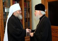 Владыка Иларион передал митрополиту Владимиру приветствие от духовенства и паствы Русской Зарубежной Церкви. Блаженнейший Владыка поздравил высокого гостя с прибытием на Украину и подарил пасхальное яйцо, а также архиерейские крест и панагию.