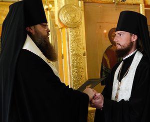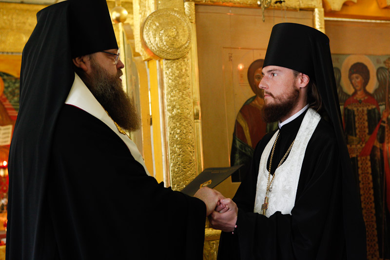 Затем владыка Меркурий провел краткое совещание, на котором игумен Петр официально вступил в должность ректора, принял печать и первичные документы.