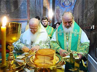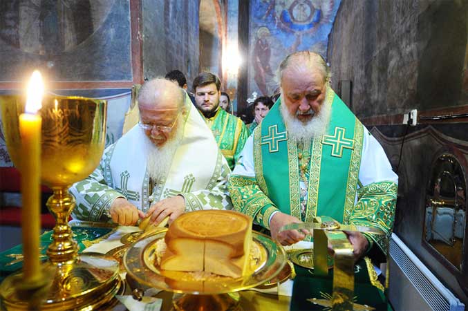 В день Святой Троицы Предстоятели Константинопольской и Русской Православных Церквей совершили Божественную литургию в Свято-Троицкой Сергиевой лавре