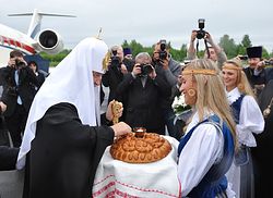 В аэропорту Петрозаводска Предстоятеля Русской Православной Церкви приветствовали глава республики С.Л. Катанандов, мэр города Петрозаводск Н.И. Левин, другие представители местных органов власти.