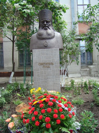 Установленный во дворе госпиталя памятник — еще одно свидетельство почитания выдающегося православного архипастыря и врача-подвижника и сыновней любви к нему крымчан.
