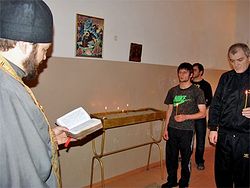 21 июня штатный священник Георгиевского кафедрального собора города Владикавказа иерей Тимофей Остаев провел беседу с заключенными в следственном изоляторе (СИЗО) города Владикавказа. Как сообщает сайт Ставропольской и Владикавказской епархии, в молитвенной комнате был отслужен молебен, были совершены Таинства Покаяния и Евхаристии.