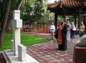 Накануне вечером у поклонного креста на месте церкви Всех святых, в усыпальнице которой были погребены мощи китайских мучеников, настоятель храма священник Сергий Воронин совершил заупокойную литию, а затем всенощное бдение.