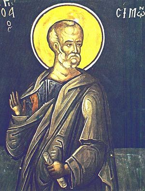 Местное предание называет местом распятия апостола Симона Кананита римское поселение Кейстор в Линкольншире. Мученичество апостола произошло при Кае Декии, чья жестокость послужила причиной восстания британской предводительницы племени иценов Будикки в 61 году. Еще одним местом, связанным со святым Симоном, является Карлтон в Йоркшире[1], около которого до наших дней сохранились келья и колодец, посвященные святому.
