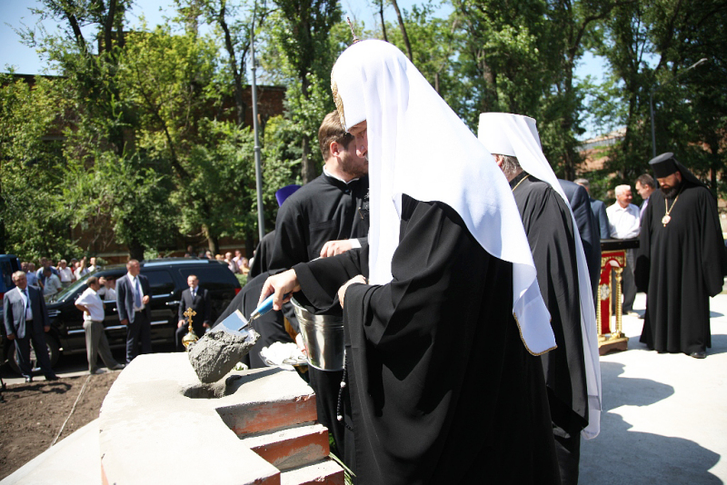 На центральной аллее завода Предстоятель Русской Православной Церкви совершил закладку храма Воскресения Христова. Подписи на закладной грамоте поставили Святейший Патриарх Кирилл, митрополит Днепропетровский и Павлоградский Ириней, руководители области и города, генеральный директор предприятия. После чтения молитвы капсула с грамотой была заложена в основание будущей заводской церкви.