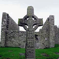 На снимках: иконы Святого Патрика; кельтский крест на фоне развалин старой церкви. В центре креста – Распятие на Голгофе, в боковых рукавах коленопреклоненные фигуры Ангелов. Под Распятием римские воины, делящие одежды Христа, и стражники, охраняющие Гроб Господень.