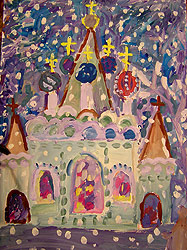 Дети поразительным образом привязываются к храму. Так Влад теперь если строит или рисует, то все чаще храм. Играет часто в священнослужителя и старательно поет: «Господи, помилуй!».
