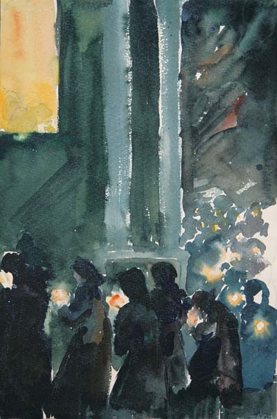 И тут среди разношерстной и не очень-то приятной этой толпы я увидела группу очень красивых молодых людей и девушек. Я поняла, что это иностранцы, но какие-то необычные, особенные. В них был какой-то свет. Они ходили вдоль ограды, растерянные, и явно что-то искали; как потом оказалось — вход. Они казались ненамного старше меня; мне вдруг страстно захотелось заговорить с ними, узнать, кто они, и понять, что же это такое в них сияет. По-английски я не говорила, только по-французски; надежды, что они тоже понимают этот не самый распространенный в мире язык, имелось немного. Но вдруг произошло чудо. Одна из девушек заметила меня и быстро ко мне пошла. «Parlez-vous français?» — спросила она. Я узнала, что они из Греции. «Как войти в церковь?» — спрашивала девушка, волнуясь. И тут я совершила страшный промах. Мысль о том, что эти молодые, прекрасные люди хотят войти в церковь, чтобы вместе с бабками праздновать Пасху, не пришла мне в голову. Я решила, что их интересует интерьер собора и этнография русской церковной службы. «Сейчас, к сожалению, невозможно, — сказала я, — но вот когда служба кончится, вы сможете войти и все посмотреть. Или завтра». Девушка посмотрела на меня с изумлением и отошла. Вскоре часы на колокольне стали бить двенадцать. Греки встали в круг и зажгли свечи. И когда наступила полночь, запели пасхальный тропарь. Это было зрелище фантастическое. Темная ночь, светлый круг, прекрасные вдохновенные лица, освещенные свечами, божественное пение — и вокруг них другой круг, плотный и черный, мои соотечественники, обступившие их кольцом, полные напряжения и непонимания. Круг этот образовался сразу, как только молодые люди зажгли свечи, и сразу же характерные личности в штатском, которых я к своим пятнадцати годам уже научилась различать в толпе, энергично протиснулись в первый ряд. Я стояла в черном кольце, и мне мучительно, до слез хотелось быть с этими молодыми греками. О том, что человеческий круг обладает мощной психологической силой, я узнала позднее, но тогда я испытала эту силу на себе. Мне было из черного круга не выйти.