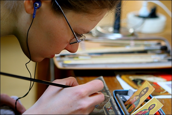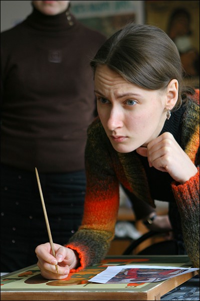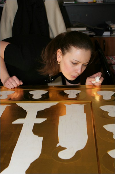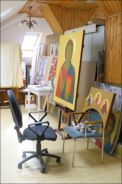 Икона, судя по всему, будет необыкновенная. Но она должна быть готова через пару месяцев, а образ лишь намечен карандашом, хотя студентам отводится целый год на подготовку такой работы. Дело тут не в нерадивости, а просто в технологии написания современных образов: прежде чем взяться за кисточку, за что только не приходится браться иконописцу…
