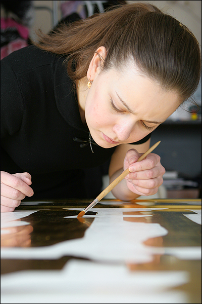 Написанный с образца рисунок – это уже полдела. Затем он переносится на доску и… пора браться за кисточки? Нет, не пора.