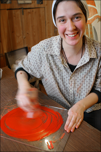 Сегодня процесс изготовления темперы почти не отличается от древнего: основные ингредиенты – яичный желток и пиво или вино. А я-то подумала, что холодильник в мастерской – только для «подкрепления братии»!