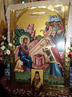 Эти события произошли не так уж давно, 29 ноября 1979 года, в храме, расположенном на том месте, где Господь у колодца Иакова беседовал с женщиной-самарянкой: «Убийцы вошли в храм, ударили монаха топором крестообразно по голове, разбили челюсти. Когда он постарался выйти из церкви и позвать на помощь, топором усекли ноги в коленях. Они совершили убийство, когда тот служил вечерню и вышел к ним в епитрахили».