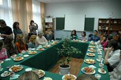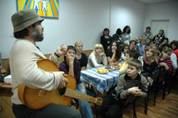 Дети — напротив. Они задавали много вопросов, смеялись, когда гости шутили, были серьезны, когда они говорили о грустном. Пока пили чай вместе с выпускниками школы-интерната, Александр долго убеждал ребят, что им не надо ждать постоянных подачек от государства или спонсоров, что надо учиться самим решать свои проблемы и добиваться чего-то самостоятельно, а не жить до 80 лет по принципу «Я — сирота, мне все обязаны». А в конце встречи в зал влетела взволнованная учительница:
