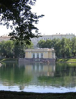 Дальше «Булгаковская тропа» пройдёт через сквер, по дороге на пруды. Здесь собираются поставить Понтия Пилата, Иешуа, Левин Матвея. Голубев скромно умалчивает о том, что сквер по дороге на пруды — это место снесённой в 30-е годы церкви Введения во храм Пресвятой Богородицы с приделом священномученика Ермолая конца XVII века. В 1610 году, в Смутное время, святым Патриархом Ермогеном здесь был построен деревянный храм в честь священномученика Ермолая. Храм снесён, но несомненно остались его фундаменты, захоронения умерших священнослужителей и прихожан. Но главное, по твёрдой вере Православной Церкви, престол в алтаре храма освящается до скончания веков и св. Ангел-хранитель пребывает при нём, даже если храм уничтожен. Уверен, что авторы размещения скульптур памяти Булгакова отлично понимают: запланировано очередное нашествие на Православие.