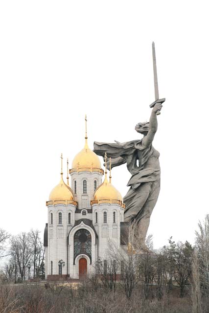 | За храмом Всех Святых возвышается главный монумент Мамаева кургана.Фото Владимира Аксенова |