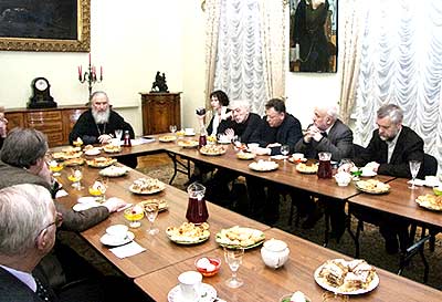 - Мне бы хотелось предварить встречу митрополита Климента, председателя Издательского Совета Русской Православной Церкви, с писателями и главными редакторами толстых литературных журналов. Это событие одновременно и знаменательное и закономерное. Пришло время представителям Церкви и творческой интеллигенции заглянуть друг другу в глаза, выяснить свои духовные, общественные и эстетические позиции, обнаружить и восстановить связи, коль скоро они были утрачены или сокрыты под спудом.
