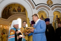 После литургии Виктор Федорович обратился к присутствующим с приветственным словом. Он подчеркнул, что сегодня на Украине большой день – в очередной раз мы празднуем годовщину Крещения Киевской Руси. «Мы находимся в месте, где крестился Великий князь Владимир», – подчеркнул Президент, добавив, – «в этом историческом месте, на этой святой земле давайте поблагодарим Господа Бога, что Он дает нам возможность вместе жить, верить и надеяться».