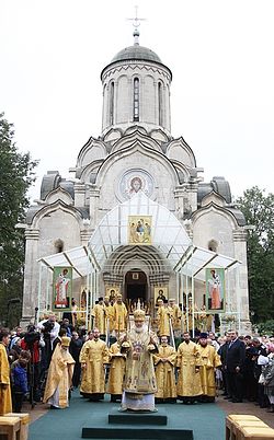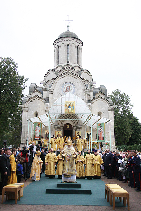 В день перенесения из Едессы в Константинополь Нерукотворенного Образа Господа Иисуса Христа Святейший Патриарх Кирилл совершил Божественную литургию в Спасо-Андрониковом монастыре
