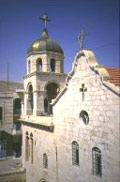 Там говорится, что Византийский император Юстиниан I, во время своего похода против Персов, шел через Сирию. Он остановился в этом пустынном месте, чтобы его, изнывающая от жажды армия могла немного отдохнуть. Ни одного источника вокруг не было, и император понимал, что если они не найдут воду, ни о каком успехе в сражении можно и не думать. И в этот самый момент он увидел вдалеке красивую газель. Юстиниан подумал, что если начать преследовать это животное, то оно, в конце концов, устанет и приведет его к источнику с водой. Так он и сделал. Сам лично он начал загонять газель, пока та не полностью не выбилась из и не привела его на скалистый холмик, у подножья которого был родник. Внезапно животное превратилось в яркий и светящийся образ Пресвятой Богородицы. Протянув к нему руку Она сказал: «Не стреляй в Меня, Юстиниан, но построй для меня церковь здесь на этом холме». Сказав это, Она исчезла.