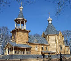 Ширина храма четыре метра, длина – одиннадцать метров. Несмотря на то, что стандартом для бревен является шесть метров, а более длинные бревна пилятся «под заказ», и несмотря на то, что транспортировка и такого лесоматериала связана с определенными трудностями, мы сочли необходимым использование именно цельных бревен в окладном венце. Это придает жесткость конструкции, а также позволяет установить этот храм без фундамента, на восьми валунах.