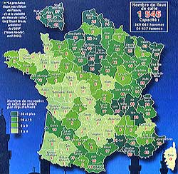 Документ, который опубликовала на этой неделе «Valeurs Actuelles» — необычаен. Это карта, от департамента к департаменту, культовых исламских мест Франции: их около 1550, если верить справочнику мечетей Франции. Путеводитель, изданный ассоциацией Буссоль в 2003 году, представляет собой первую серьезную работу по переписи мечетей и мест для молитвы во Франции. В нем есть адрес, часы открытия и вместимость каждого из культовых мест. Большая часть находится на восточной линии, связывающей Гавр с Монпелье, в промышленной Франции, где расположилась с 1950 годов рабочая сила из Магрибы и Турции: север Па-де-Кале, Иль-де-Франс, Альсац-Мосель, Рон-Альп, Прованс-Альп-Кот-д’Азюр. Семейная клановость помогла иммигрантам закрепиться в этих регионах с 1975 года.