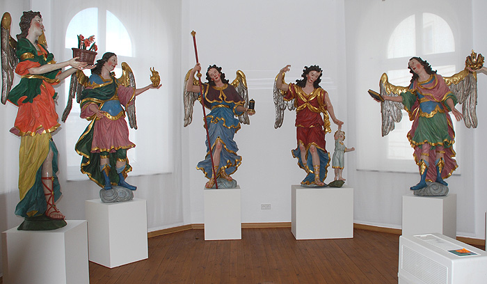 Организаторы выставки позаботились о том, чтобы ее посетители увидели ангелов на древних иконах Греции и России, а также на уникальных живописных полотнах из Роттердама и Иерусалима, графических работах Дюрера и Рембрандта, в cкульптурных изображениях баварской церкви святой Анны из Аугсбруга. Здесь также представлены крылатые хранители Фрайзинга в исполнении баварских церковных мастеров резьбы по дереву и камню.