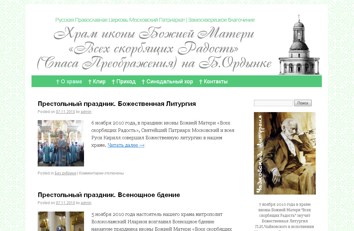 6 ноября 2010 года открылся сайт московского храма в честь иконы Божией Матери «Всех скорбящих Радость». Адрес нового сайта — ordynka.com.