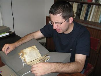 В первый же день наталкиваюсь на недостающую часть своеобразной Минеи 11 века из Российской Национальной Библиотеки. Вот откуда она к нам попала! Хранящийся у нас кодекс долгое время не могли датировать и объяснить особенности его содержания. Теперь все начинает проясняться... Вскоре получаю в руки уникальный Тропологий 8 века, найденный архимандритом Софронием в 1975 году, и не могу оторваться от сокровища. На сегодня это древнейший гимнографический сборник на греческом языке, предшественник Минеи, Октоиха и Триоди. Многие песнопения посвящены апостолам, чувствуется их близость к апостольской эре: «Возопиша в скорби своей апостоли к Тебе, щедрому Богу, и возвел их во царствие Твое. Проповедаша языкам апостоли Тя, щедраго Бога, и привел их во царствие Твое. Просветиша языки заблудшия святии апостоли, и возвел их во царствие Твое». В одиннадцать в библиотеку заходит египтянин Евгений из Александрии и осведомляется, какие напитки нам принести – чай или кофе, сколько положить сахару, и вскоре возвращается с благоухающим подносом.