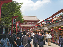 И мы к местной пище привыкаем быстрей, чем это казалось возможным. Привыкаем к тому, что нам кланяются буквально на каждом шагу — продавцы магазинчиков, мимо которых мы проходим, те, к кому мы обратились с каким-то вопросом. Привыкаем к потрясающей воображение чистоте, отсутствию смога, к тому, что с утра японцы собственноручно моют тротуары перед своими лавочками… Привыкаем к тому, что все здесь удивительно продумано, сделано «для человека» — не для какого-то далекого, а для того самого, который ходит каждый день по улице. Тут на тротуарах специальные дорожки с пупырышками для слепых, перед проезжей частью они расширяются особым образом, предупреждая незрячего человека о переходе. Ко всему этому мы привыкаем — моментально, как и ко всему хорошему. Хотя прекрасно понимаем: скоро придется отвыкать.